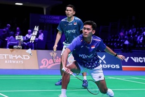 Jakarta - Fajar Alfian/Muhammad Shohibul Fikri melewati ujian babak pertama Hylo Open 2025. Mereka menyingkirkan wakil Malaysia lewat kemenangan dua gim langsung.