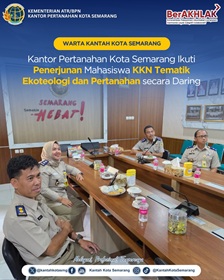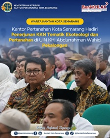 Pekalongan — Kantor Pertanahan Kota Semarang turut hadir dalam kegiatan Penerjunan Mahasiswa Kuliah Kerja Nyata (KKN) Tematik Ekoteologi dan Pertanahan yang diselenggarakan oleh Universitas I... Selengkapnya