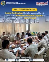Semarang — Kantor Pertanahan Kota Semarang menghadiri kegiatan wawancara penelitian bertema “Sengketa dan Konflik Pertanahan dalam Rangka Reforma Agraria” yang diselenggarakan ole... Selengkapnya