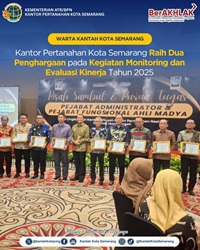 Kantor Pertanahan Kota Semarang kembali menunjukkan komitmennya dalam mewujudkan pelayanan publik yang unggul dan berintegritas. Hal ini dibuktikan melalui capaian pada kegiatan Monitoring dan Eval... Selengkapnya