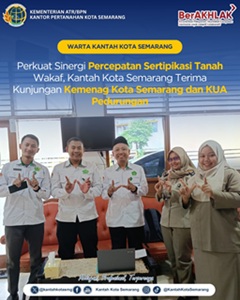 Semarang- Dalam rangka mempercepat pelaksanaan sertipikasi tanah wakaf di wilayah Kota Semarang, Kantor Pertanahan Kota Semarang menerima kunjungan koordinasi dari perwakilan Kementerian Agama (Kem... Selengkapnya