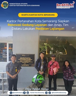 Semarang — Dalam upaya meningkatkan kualitas pelayanan publik, Kantor Pertanahan Kota Semarang berencana melakukan renovasi Gedung Arsip dan Ruang Loket Layanan. Sebagai langkah awal, Tim dar... Selengkapnya