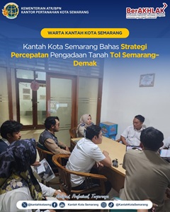 Semarang- Dalam rangka memperkuat koordinasi antarinstansi, Kantor Pertanahan Kota Semarang melakukan pertemuan dengan Dinas Tata Ruang (Distaru) Kota Semarang terkait hasil inventarisasi dan ident... Selengkapnya