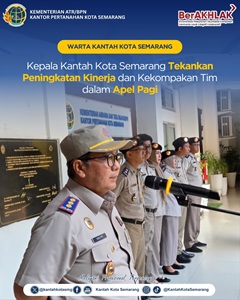 Semarang (07/10/2025) — Kantor Pertanahan Kota Semarang melaksanakan apel pagi rutin di halaman kantor pada Selasa (07/10/2025). Kegiatan ini diikuti oleh seluruh ASN, PPNPN, dan ASN Kontrak ... Selengkapnya