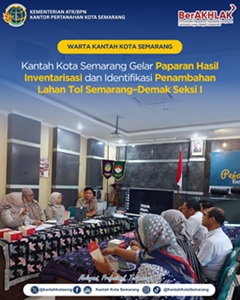 Semarang- Kantor Pertanahan Kota Semarang menggelar kegiatan Paparan Ekspose Data Hasil Inventarisasi dan Identifikasi (Inven & Iden) bidang tanah yang terkena pengadaan tanah untuk penambahan ... Selengkapnya