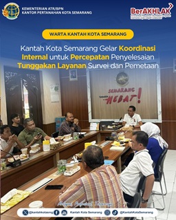 Semarang – Kantor Pertanahan Kota Semarang terus berupaya meningkatkan kualitas pelayanan publik melalui percepatan penyelesaian tunggakan layanan, khususnya di bidang survei dan pemetaan. Se... Selengkapnya